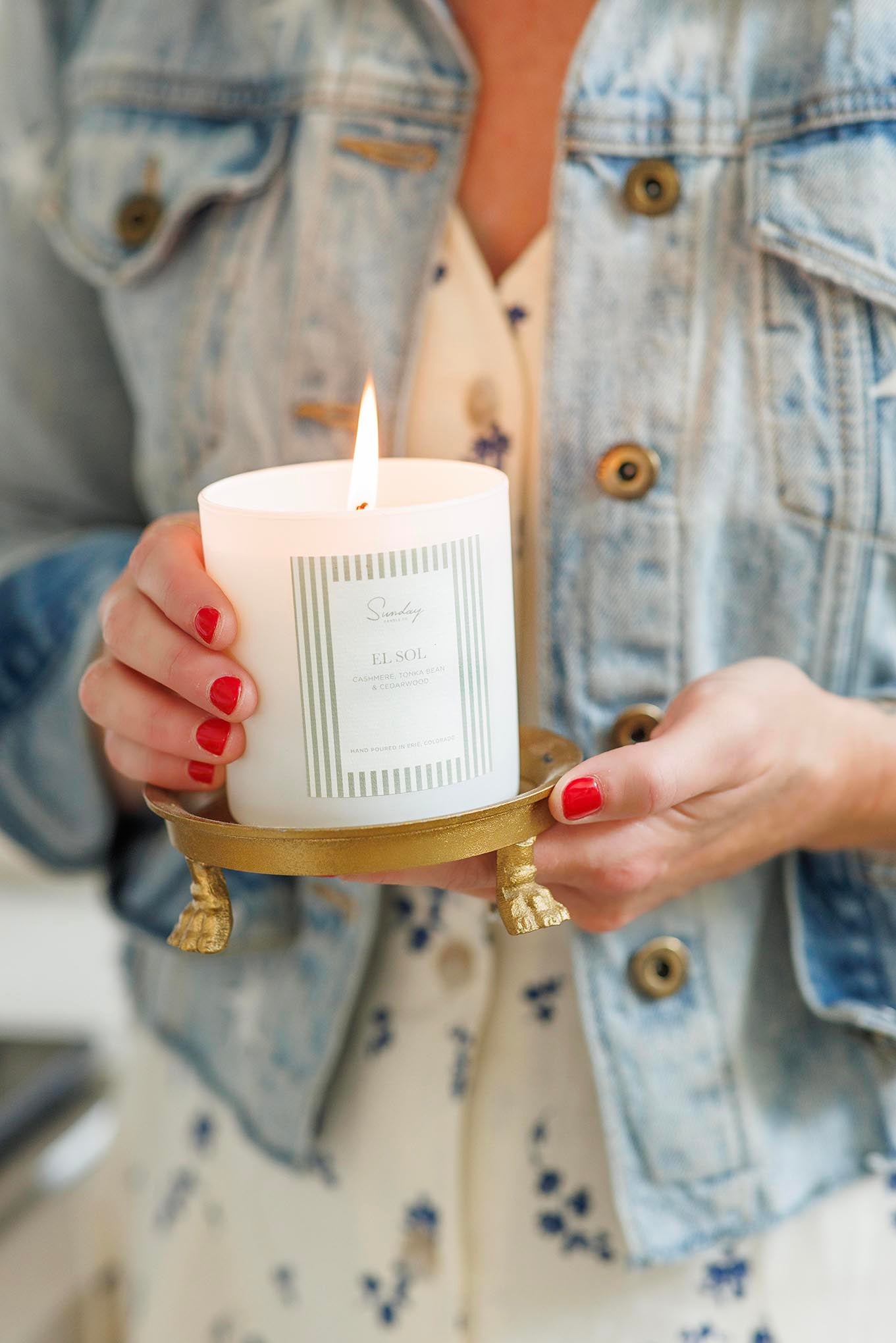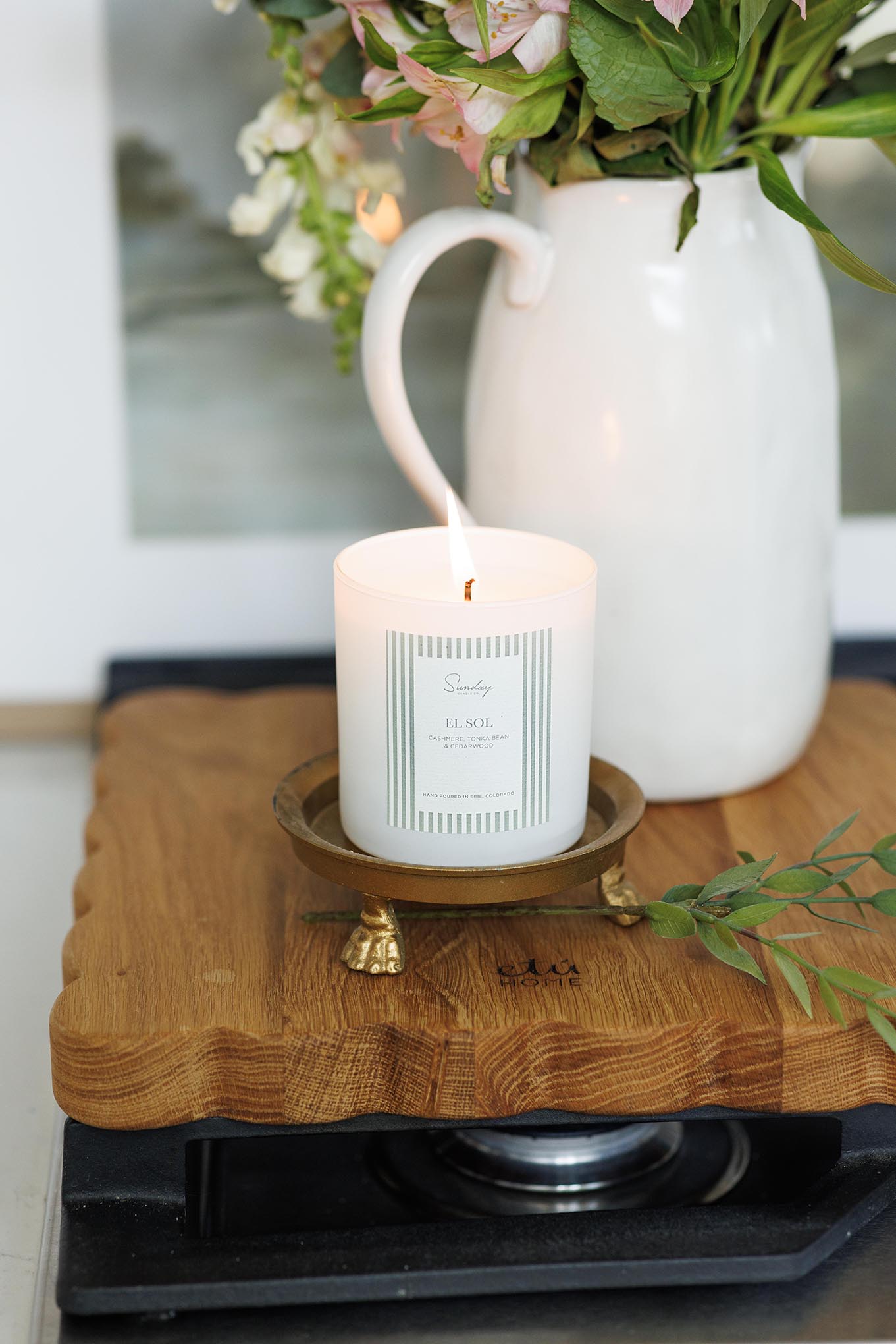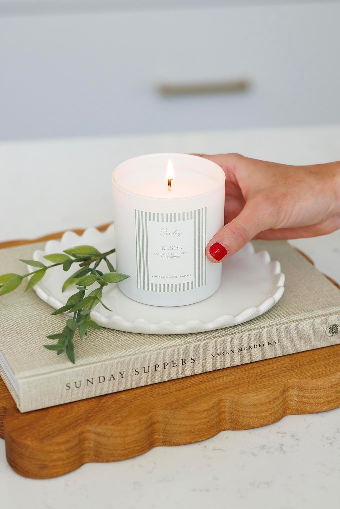 Enveloping you in a cocoon of comfort, this exquisite blend begins with the rich, woody notes of cedar wood, a touch of cashmere adds a luxurious softness, and creamy vanilla rounds out the fragrance, infusing a sweet, comforting finish. Hand-poured into a 9oz signature white matte jar + custom Sunday Candle letterpress dust cover.